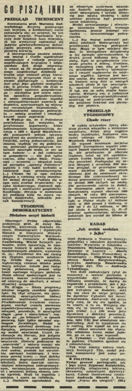 Archiwum / Co piszą inni nr 1966 (07/1983) 80840/123969 Podziel się Tytuł Co piszą inni Rubryka Co piszą inni Artykuł z numeru 1966 (7/1983) Data wydania 13 lutego 1983 Tagi Mariusz Gulczyński kryzys Jerzy Maternicki nauczanie historii Wojciech Surdyk minimum socjalne Teatr Rzeczypospolitej