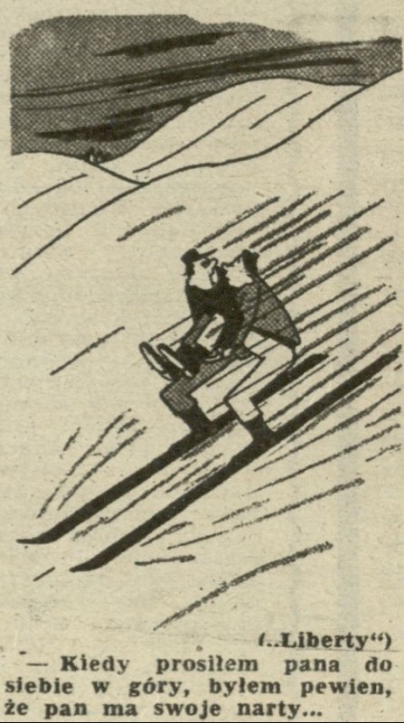 Archiwum / Rozmaitości [old] nr 105 (15/1947) 2994/123969 Podziel się Tytuł [Kiedy prosiłem pana...] Autor Liberty Rubryka Rozmaitości [old] Artykuł z numeru 105 (15/1947) Data wydania 19 kwietnia 1947 Tagi narciarstwo