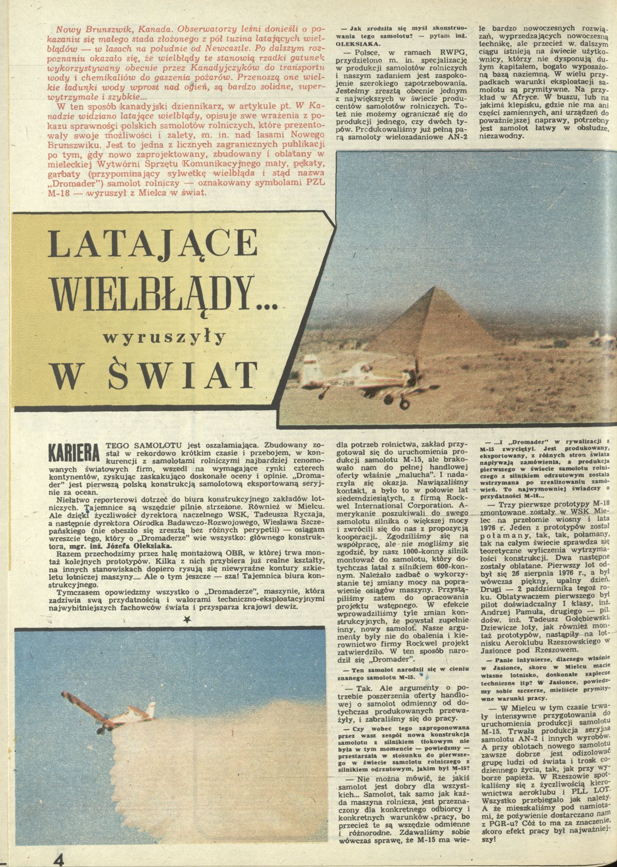 Archiwum / Rozmowy „Przekroju” nr 1968 (09/1983) 1/1 Podziel się Tytuł Latające wielbłądy wyruszyły w świat Rubryka Rozmowy „Przekroju” Artykuł z numeru 1968 (9/1983) Data wydania 27 lutego 1983 Tagi samolot