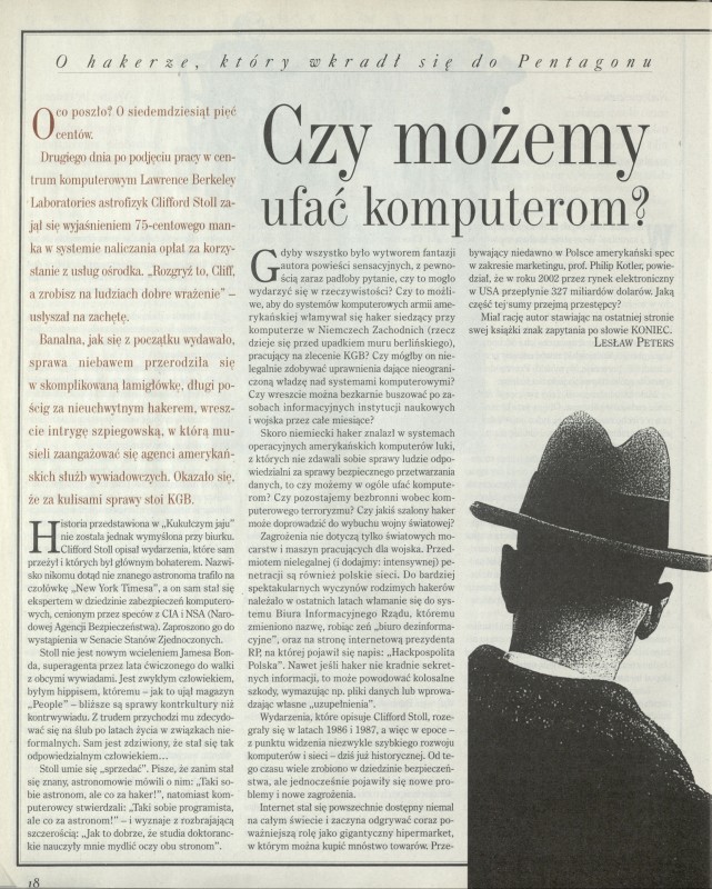 Archiwum nr 2784 (27/1998) 08/31 Podziel się Tytuł Czy możemy ufać komputerom ? Autor Lesław Peters Artykuł z numeru 2784 (2785/1998) Data wydania 1 listopada 1998 Tagi haker