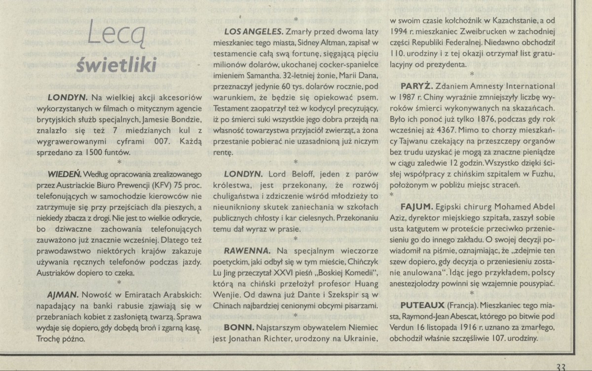 Archiwum / Lecą świetliki nr 2784 (27/1998) 120069/123969 Podziel się Tytuł Lecą świetliki Rubryka Lecą świetliki Artykuł z numeru 2784 (2785/1998) Data wydania 1 listopada 1998 Tagi Bond Dante