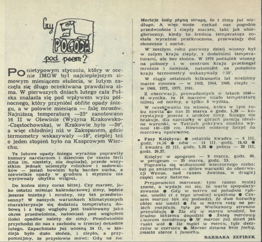 Archiwum / Czy pogoda pod psem? nr 1969 (10/1983) 31/118 Podziel się Tytuł Czy pogoda pod psem? Autor Barbara Zefirek Rubryka Czy pogoda pod psem? Artykuł z numeru 1969 (10/1983) Data wydania 6 marca 1983 Tagi prognoza pogody meteorologia