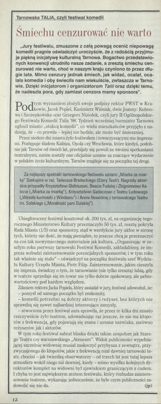 Archiwum nr 2785 (27/1998) 120117/123969 Podziel się Tytuł Śmiechu cenzurować nie warto Artykuł z numeru 2785 (2786/1998) Data wydania 8 listopada 1998 Tagi festiwal