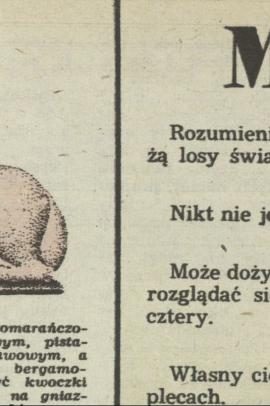 Archiwum / Okienko z wierszem nr 1973 (14/1983) 06/20 Podziel się Tytuł Okienko z wierszem Autor Ewa Fiszer Rubryka Okienko z wierszem Artykuł z numeru 1973 (14/1983) Data wydania 8 kwietnia 1983