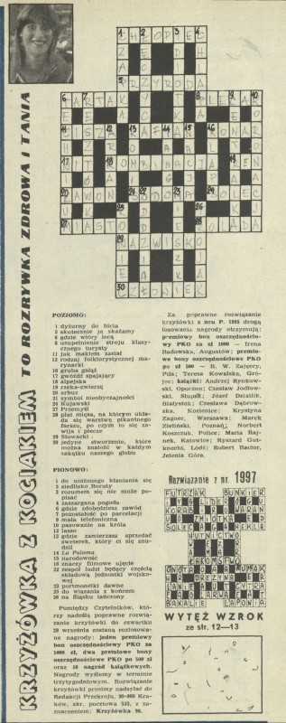 Archiwum / Krzyżówka z kociakiem nr 1998 (39/1983) 82192/123969 Podziel się Tytuł Krzyżówka z kociakiem Rubryka Krzyżówka z kociakiem Artykuł z numeru 1998 (39/1983) Data wydania 25 września 1983 Tagi krzyzówka kociak