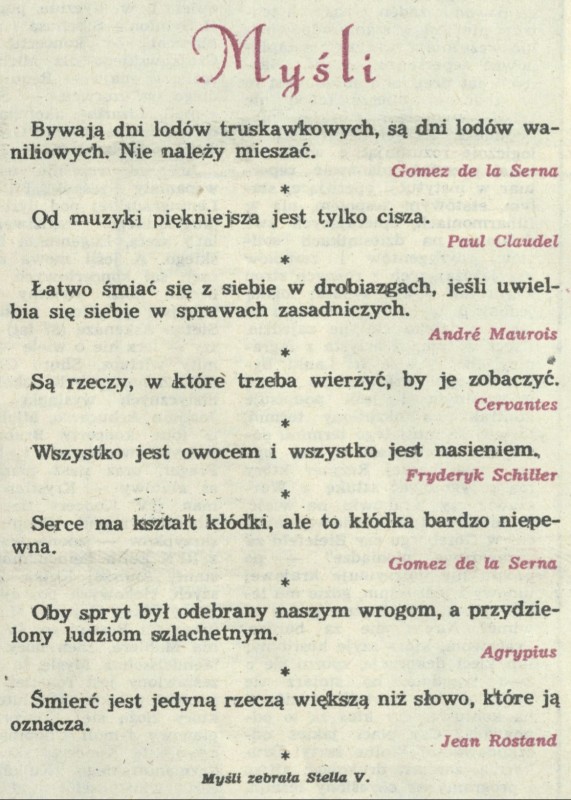 Archiwum / Myśli nr 1996 (37/1983) 47/152 Podziel się Tytuł Myśli Autor Stella Varcaby Rubryka Myśli Artykuł z numeru 1996 (37/1983) Data wydania 11 września 1983 Tagi cytaty aforyzmy