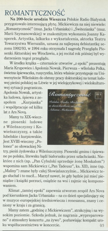 Archiwum / Recenzja nr 2787 (27/1998) 99/114 Podziel się Tytuł Romantyczność Kategoria Recenzja Artykuł z numeru 2787 (2788/1998) Data wydania 22 listopada 1998 Tagi muzyka płyta