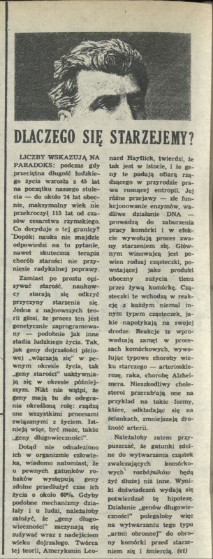 Archiwum / Nauka nr 2154 (38/1986) 2/6 Podziel się Tytuł Dlaczego się starzejemy? Autor et Kategoria Nauka Artykuł z numeru 2154 (38/1986) Data wydania 21 września 1986 Tagi starość geny dna
