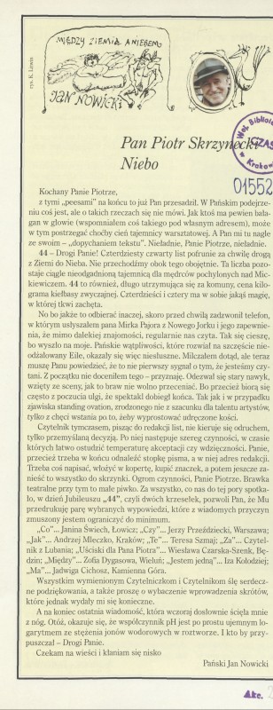 Archiwum / Korespondencja nr 2793 (27/1999) 120625/123969 Podziel się Tytuł Pan Piotr Skrzynecki Niebo Autor Jan Nowicki Kategoria Korespondencja Artykuł z numeru 2793 (2794/1999) Data wydania 3 stycznia 1999 Tagi Eile wątpliwości