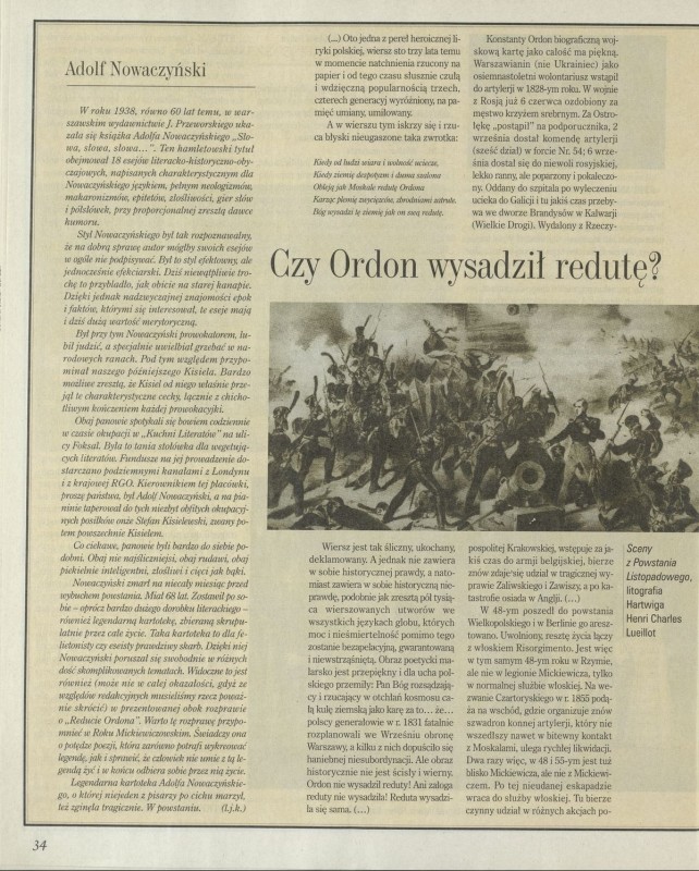 Archiwum nr 2793 (27/1999) 1/2 Podziel się Tytuł Czy Ordon wysadził redutę ? Autor Adolf Nowaczyński Artykuł z numeru 2793 (2794/1999) Data wydania 3 stycznia 1999 Tagi szturm