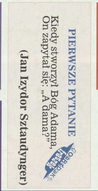 Archiwum nr 2793 (27/1999) 01/44 Podziel się Tytuł Pierwsze pytanie Autor Jan Izydor Sztaudynger Artykuł z numeru 2793 (2794/1999) Data wydania 3 stycznia 1999 Tagi ogródek fraszek
