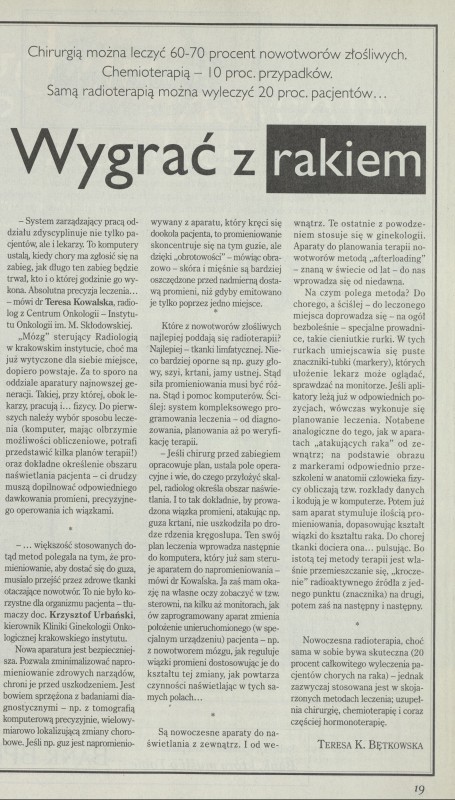 Archiwum nr 2794 (27/1999) 92/3124 Podziel się Tytuł Wygrać z rakiem Autor Teresa Bętkowska Artykuł z numeru 2794 (2795/1999) Data wydania 10 stycznia 1999 Tagi nowotwór
