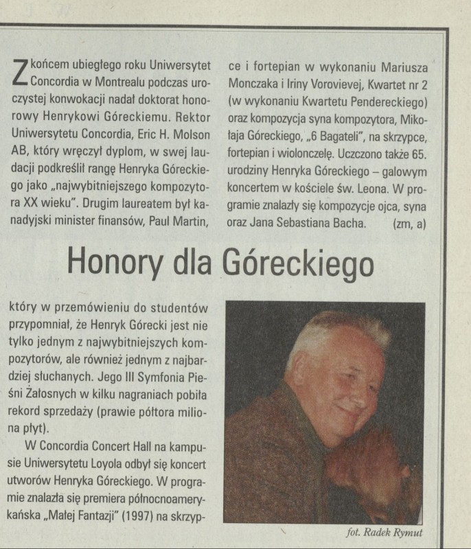 Archiwum nr 2794 (27/1999) 3/3 Podziel się Tytuł Honory dla Góreckiego Artykuł z numeru 2794 (2795/1999) Data wydania 10 stycznia 1999 Tagi kompozytor
