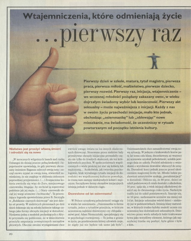 Archiwum / Artykuł nr 2798 (27/1999) 120958/123969 Podziel się Tytuł ..pierwszy raz Autor Monika Wąs Kategoria Artykuł Artykuł z numeru 2798 (2799/1999) Data wydania 7 lutego 1999 Tagi obyczaje
