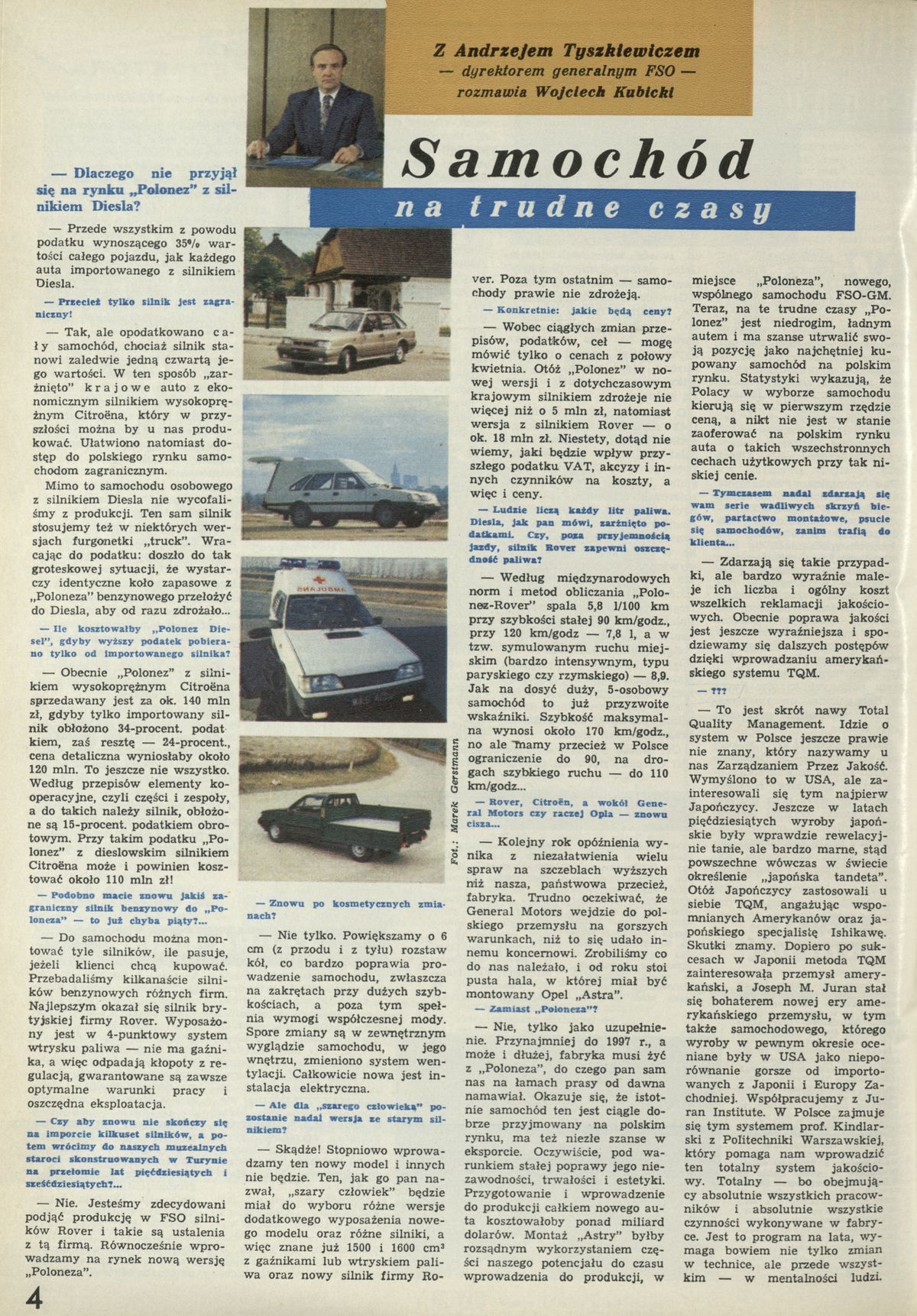 Archiwum / Wywiad nr 2496 (17/1993) 18/74 Podziel się Tytuł Samochód na trudne czasy Autor Wojciech Kubicki Kategoria Wywiad Artykuł z numeru 2496 (17/1993) Data wydania 25 kwietnia 1993 Tagi Polonez