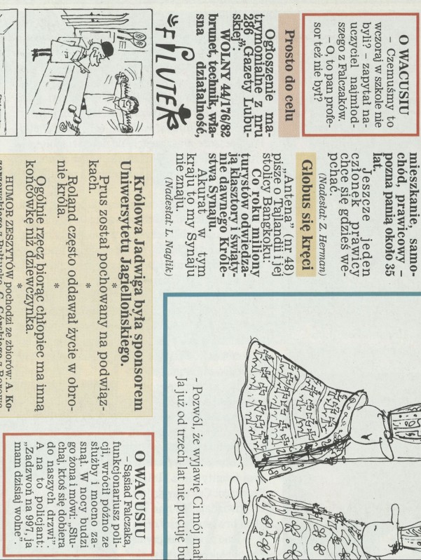Archiwum / O Wacusiu nr 2801 (28/1999) 121208/123969 Podziel się Tytuł O Wacusiu Rubryka O Wacusiu Artykuł z numeru 2801 (2802/1999) Data wydania 28 lutego 1999 Tagi Falczak