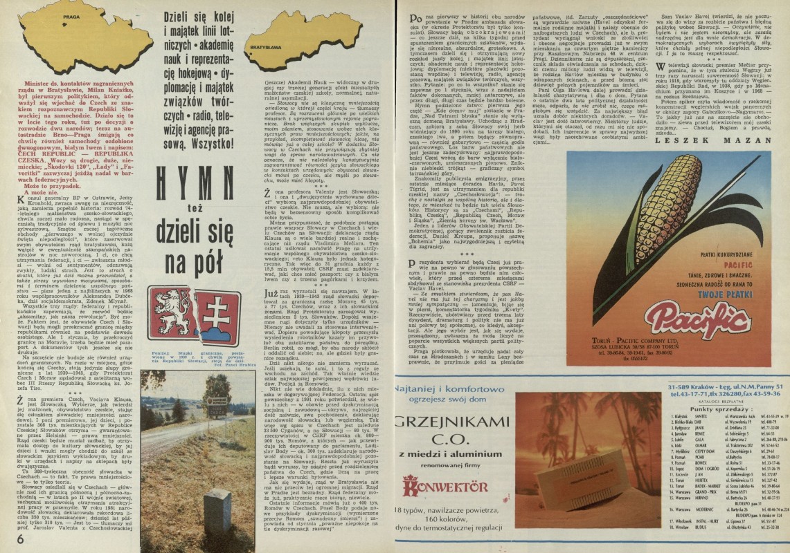 Archiwum nr 2472 (24/1992) 02/13 Podziel się Tytuł Hymn też dzieli się na pół Autor Leszek Mazan Artykuł z numeru 2472 (2473/1992) Data wydania 8 listopada 1992 Tagi Czechy Słowacja