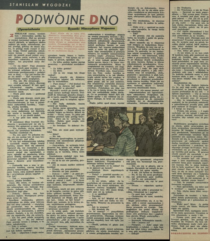 Archiwum / Opowiadanie nr 516 (09/1955) 19462/123969 Podziel się Tytuł Podwójne dno Autor Stanisław Wygodzki Mieczysław Wejman Kategoria Opowiadanie Artykuł z numeru 516 (9/1955) Data wydania 27 lutego 1955