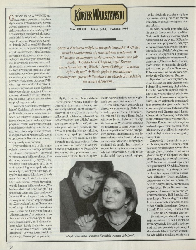 Archiwum / Kurier Warszawski nr 2808 (28/1999) 121620/123969 Podziel się Tytuł Kurier Warszawski Autor Lucjan Kydryński Rubryka Kurier Warszawski Artykuł z numeru 2808 (2809/1999) Data wydania 18 kwietnia 1999 Tagi teatr pieśni