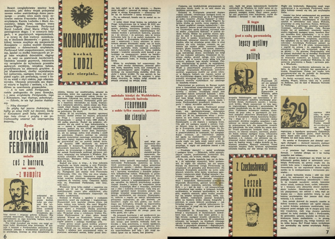 Archiwum / korespondencja własna "Przekroju" nr 2236 (16/1988) 32048/123969 Podziel się Tytuł Konopiszte kochał ludzi Autor Leszek Mazan Rubryka korespondencja własna "Przekroju" Artykuł z numeru 2236 (16/1988) Data wydania 17 kwietnia 1988