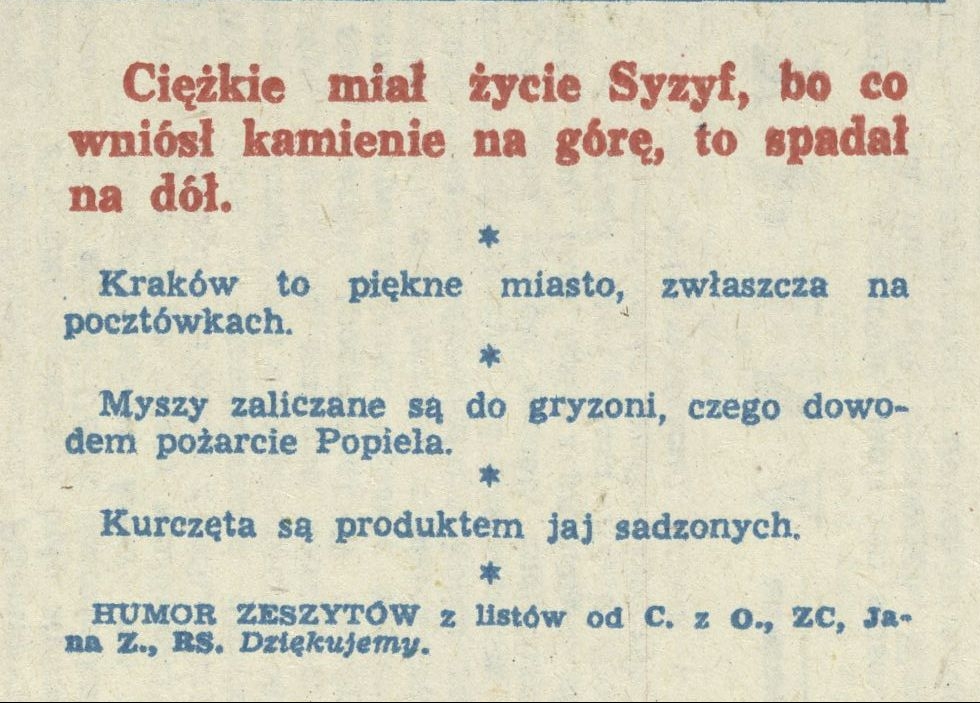 Archiwum / Humor zeszytów szkolnych nr 2236 (16/1988) 16/46 Podziel się Tytuł Humor zeszytów Rubryka Humor zeszytów szkolnych Artykuł z numeru 2236 (16/1988) Data wydania 17 kwietnia 1988 Tagi humor zeszyt