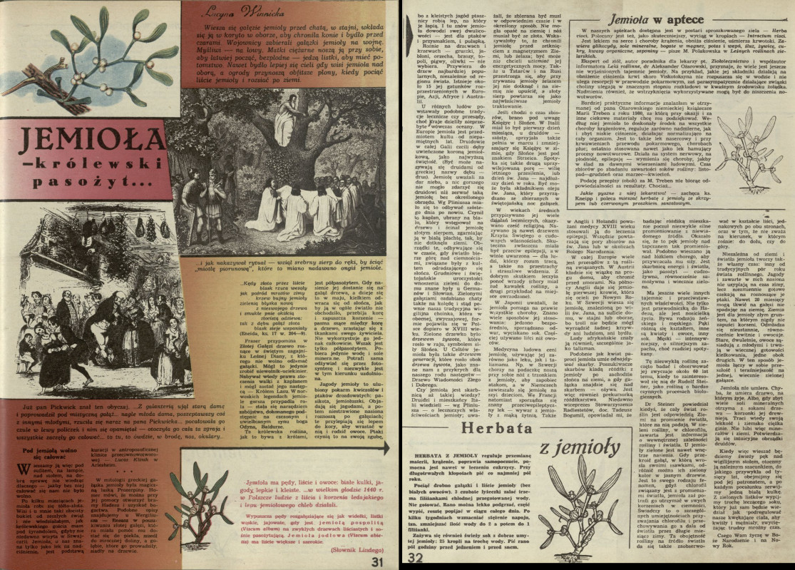 Archiwum / Artykuł nr 2010-11 (51-52/1983) 06/152 Podziel się Tytuł Jemioła – królewski pasożyt Autor Lucyna Winnicka Kategoria Artykuł Artykuł z numeru 2010-11 (51/1983) Data wydania 18 grudnia 1983 Tagi święta święta bożego narodzenia wiglia tradycja rośliny jemioła herbata
