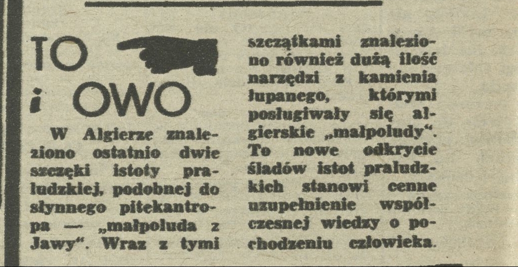 Archiwum / To i owo nr 516 (09/1955) 77/443 Podziel się Tytuł To i owo Rubryka To i owo Artykuł z numeru 516 (9/1955) Data wydania 27 lutego 1955 Tagi szczęki znalezisko