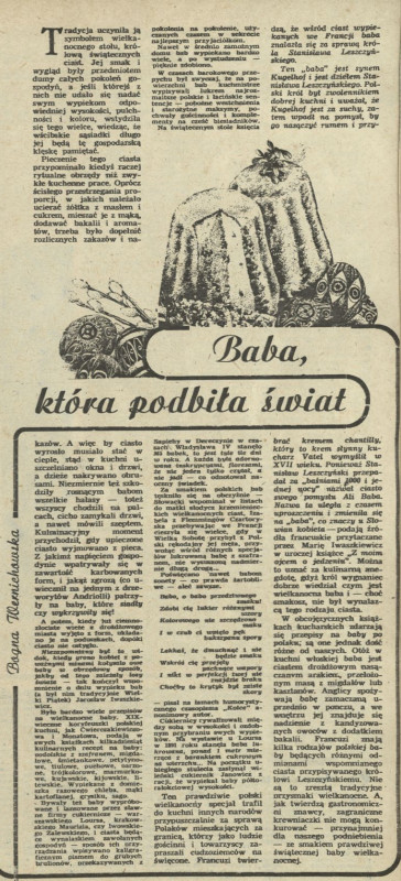 Archiwum / Artykuł nr 1880 (16/1981) 210/580 Podziel się Tytuł Baba, która podbija świat Autor Bo Wer Kategoria Artykuł Artykuł z numeru 1880 (16/1981) Data wydania 19 kwietnia 1981 Tagi kuchnia przepis kulinarny gastronomia święta wielkanoc ciasta babka tradycja