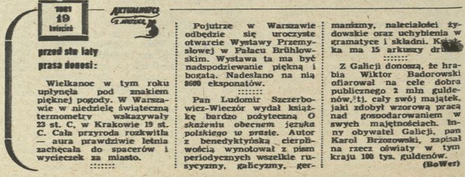 Archiwum / Aktualności z myszką nr 1880 (16/1981) 33/426 Podziel się Tytuł Aktualności z myszką – 19 kwiecień 1881 Autor BoWer Rubryka Aktualności z myszką Artykuł z numeru 1880 (16/1981) Data wydania 19 kwietnia 1981 Tagi prasa historia