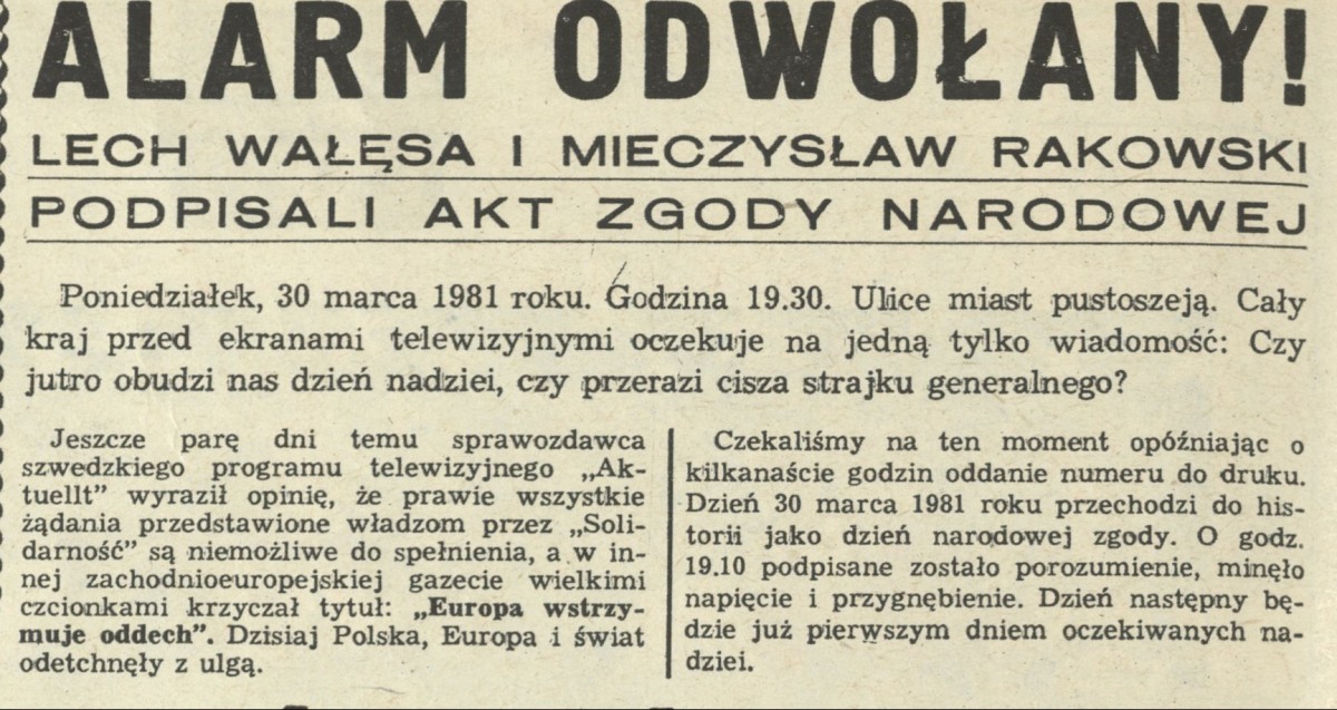 Archiwum / Przekrój tygodnia nr 1878 (14/1981) 2219/3219 Podziel się Tytuł Alarm odwołany Rubryka Przekrój tygodnia Artykuł z numeru 1878 (14/1981) Data wydania 5 kwietnia 1981 Tagi Akto zgody narodowej Wałęsa Rakowski