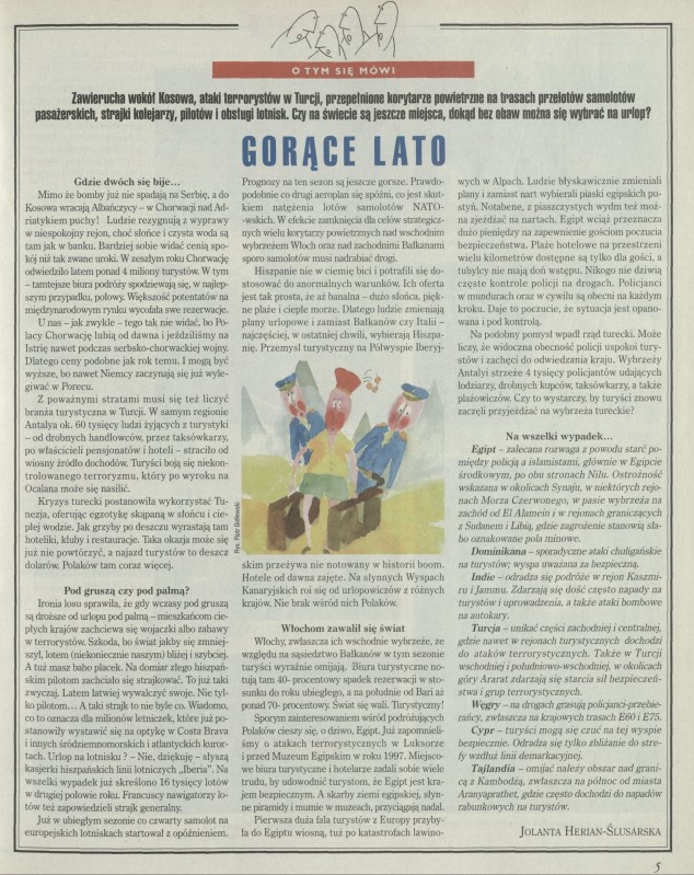 Archiwum nr 2822 (28/1999) 05/248 Podziel się Tytuł Gorące lato Autor Jolanta Herian-Ślusarska Artykuł z numeru 2822 (2823/1999) Data wydania 25 lipca 1999 Tagi Bałkany