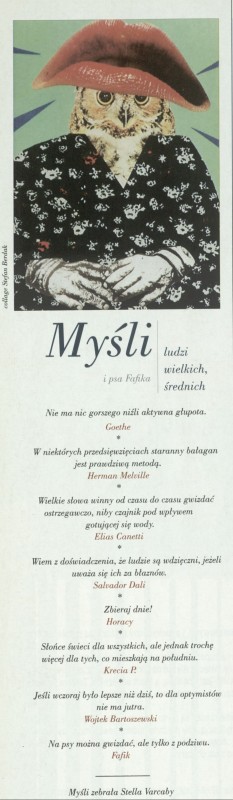 Archiwum / Myśli nr 2822 (28/1999) 122480/123969 Podziel się Tytuł Myśli Autor Stella Varcaby Rubryka Myśli Artykuł z numeru 2822 (2823/1999) Data wydania 25 lipca 1999 Tagi powiedzonka