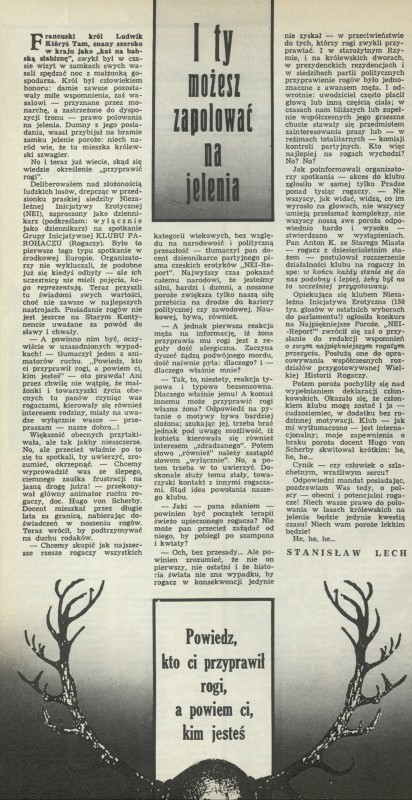 Archiwum / Różności nr 2488 (09/1993) 36/238 Podziel się Tytuł I ty możesz zapolować na jelenia Autor Stanisław Lech Kategoria Różności Artykuł z numeru 2488 (9/1993) Data wydania 28 lutego 1993 Tagi Klub Parohaczu Rogacze zdrada małżeństwo