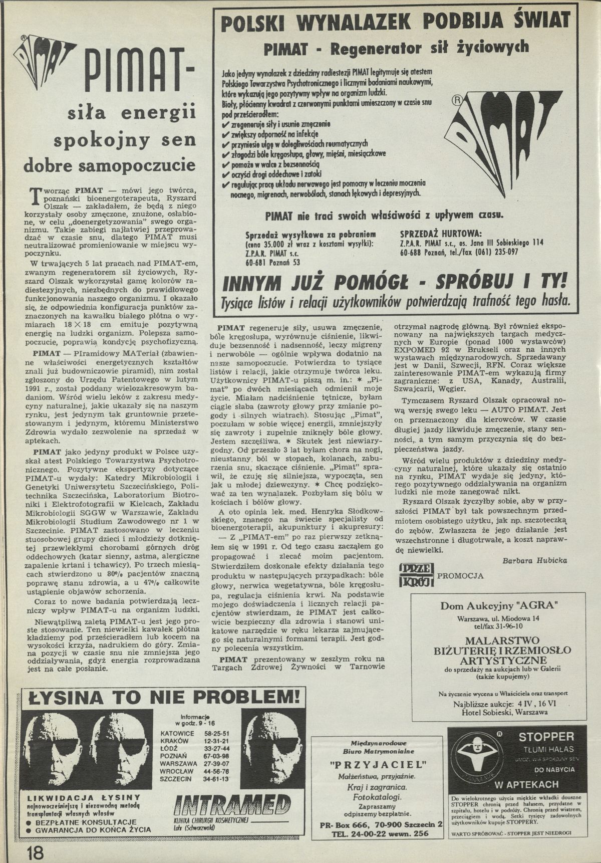 Archiwum / Reklamy nr 2488 (09/1993) 103665/123969 Podziel się Tytuł [Reklama] Rubryka Reklamy Artykuł z numeru 2488 (9/1993) Data wydania 28 lutego 1993 Tagi reklama PIMAT AGRA INTRAMED STOPPER