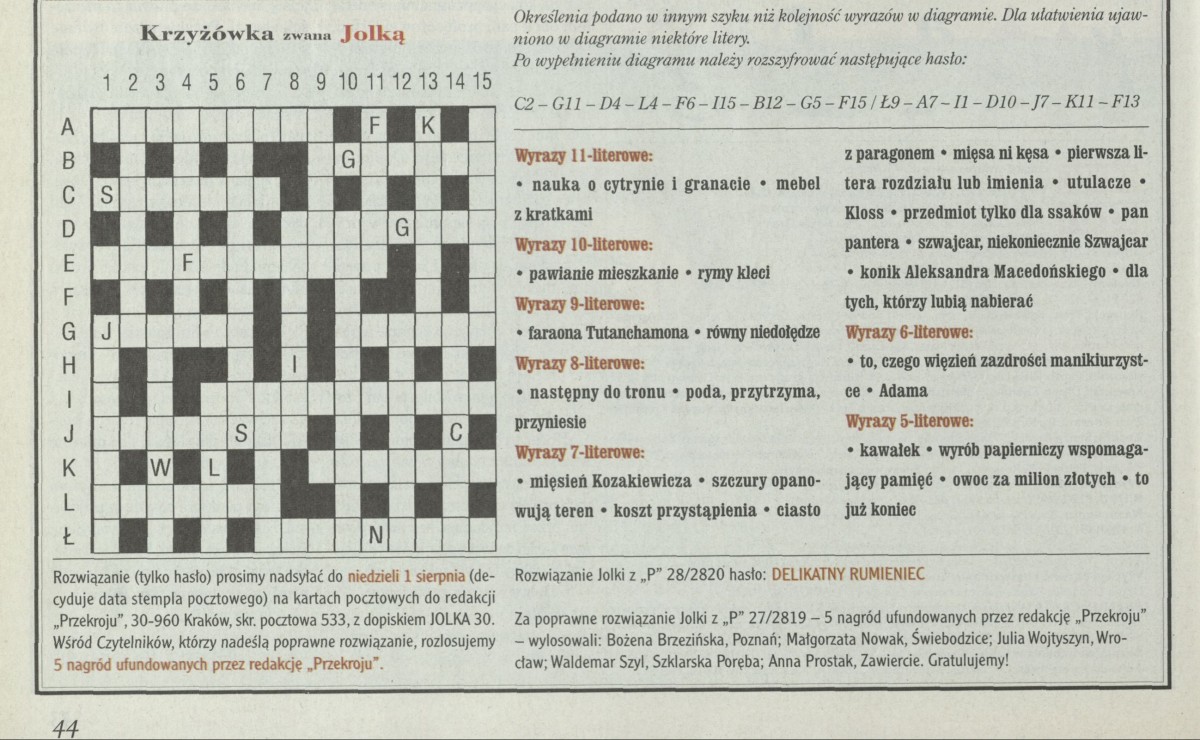 Archiwum / Krzyżówka nr 2822 (28/1999) 765/799 Podziel się Tytuł Krzyżówka zwana Jolką Rubryka Krzyżówka Artykuł z numeru 2822 (2823/1999) Data wydania 25 lipca 1999 Tagi rozrywka zdrowa i tania