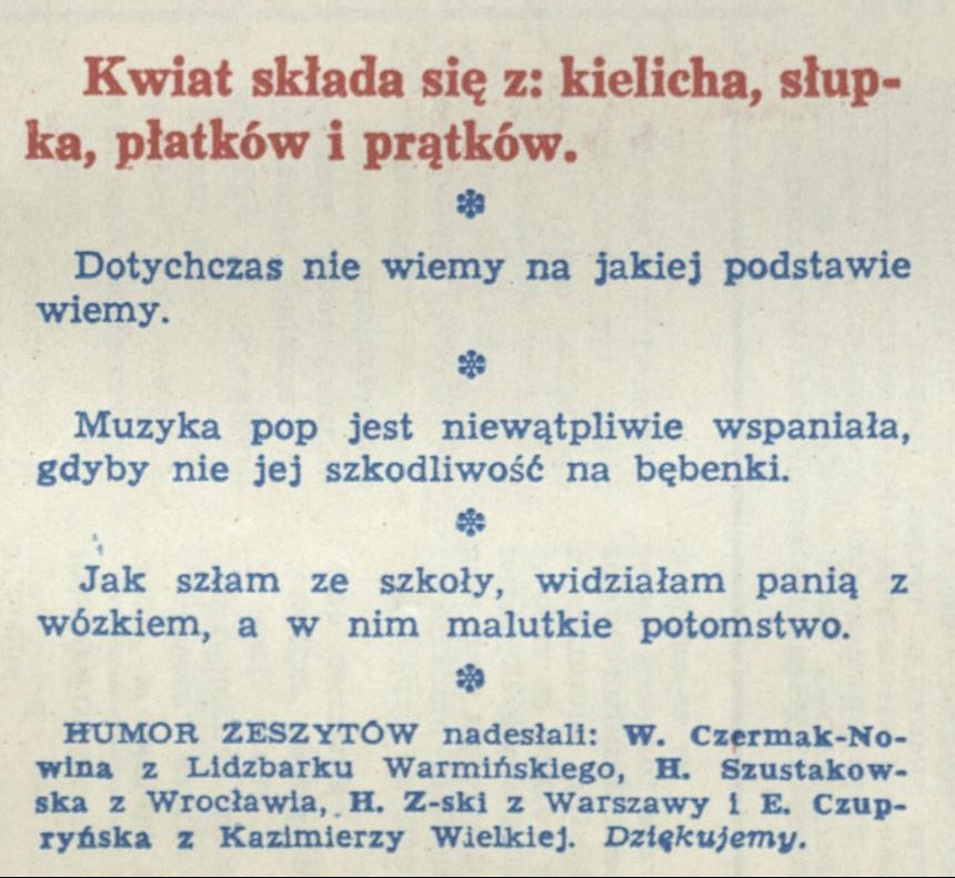 Archiwum / Humor zeszytów szkolnych nr 2489 (10/1993) 296/1474 Podziel się Tytuł Humor zeszytów Rubryka Humor zeszytów szkolnych Artykuł z numeru 2489 (10/1993) Data wydania 7 marca 1993 Tagi humor zeszytów