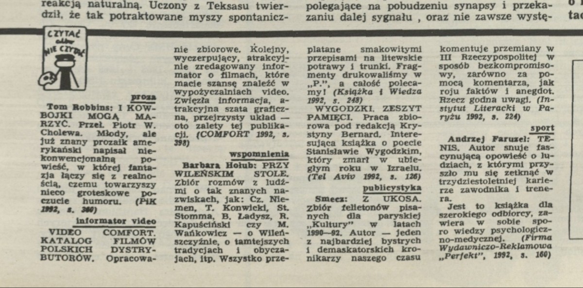 Archiwum / Czytać albo nie czytać? nr 2490 (11/1993) 1593/1866 Podziel się Tytuł Czytać albo nie czytać? Rubryka Czytać albo nie czytać? Artykuł z numeru 2490 (11/1993) Data wydania 14 marca 1993 Tagi Andrzej Faruzel Barbara Hołub