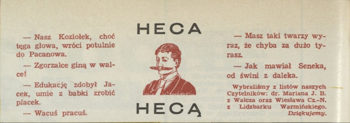 Archiwum / Heca hecą nr 2490 (11/1993) 40/50 Podziel się Tytuł Heca hecą Rubryka Heca hecą Artykuł z numeru 2490 (11/1993) Data wydania 14 marca 1993 Tagi heca hecą