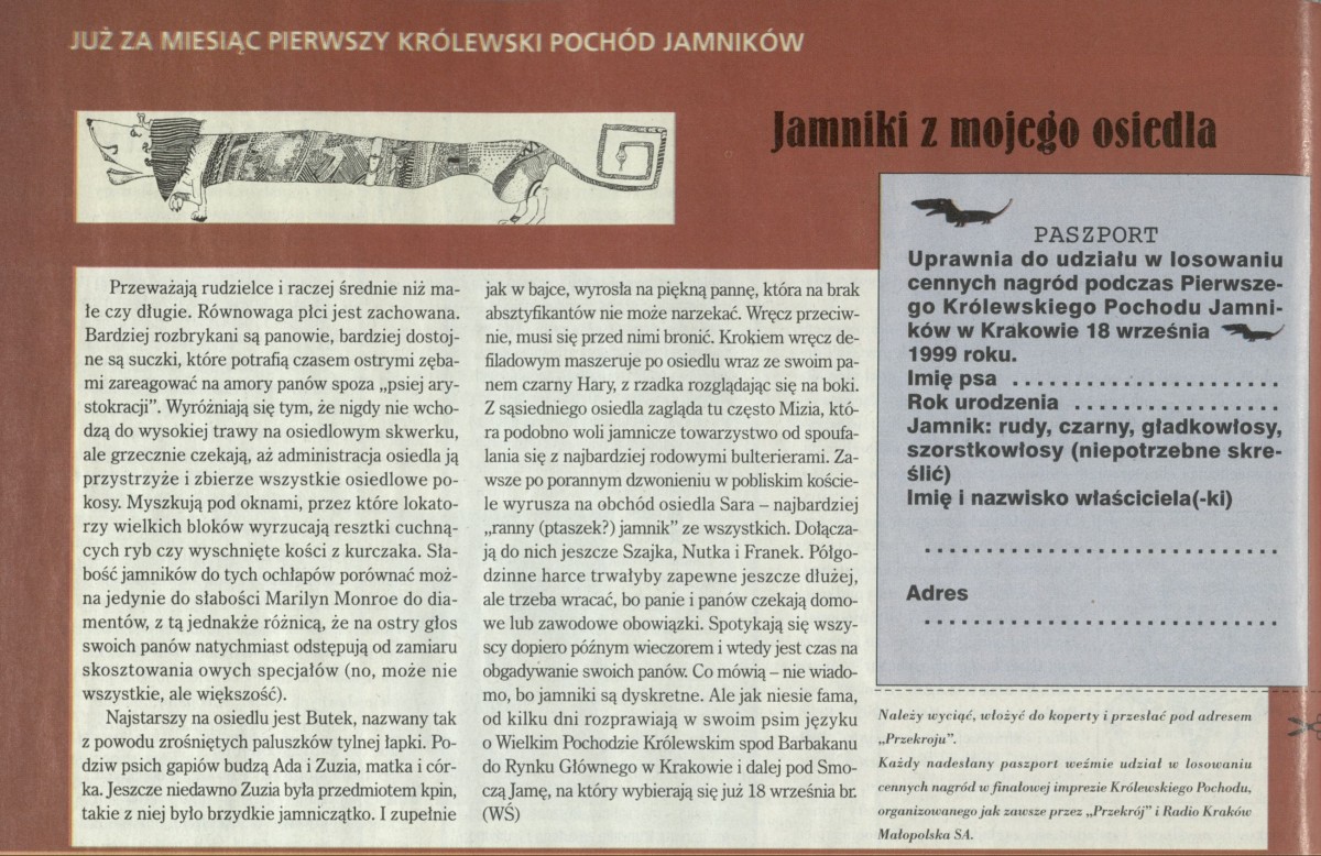 Archiwum nr 2825 (28/1999) 122678/123969 Podziel się Tytuł Jamniki z mojego osiedla Artykuł z numeru 2825 (2826/1999) Data wydania 15 sierpnia 1999 Tagi pochód