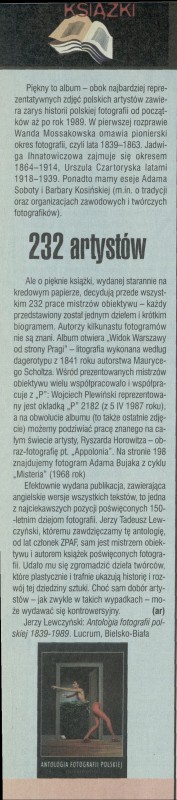 Archiwum / Książki nr 2828 (28/1999) 34/390 Podziel się Tytuł 232 artystów Rubryka Książki Artykuł z numeru 2828 (2829/1999) Data wydania 5 września 1999 Tagi książki