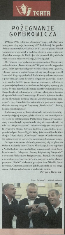 Archiwum / Relacja nr 2828 (28/1999) 04/238 Podziel się Tytuł Pożegnanie Gombrowicza Autor Zbyszek Dymarski Kategoria Relacja Artykuł z numeru 2828 (2829/1999) Data wydania 5 września 1999 Tagi tablica pamiątkowa