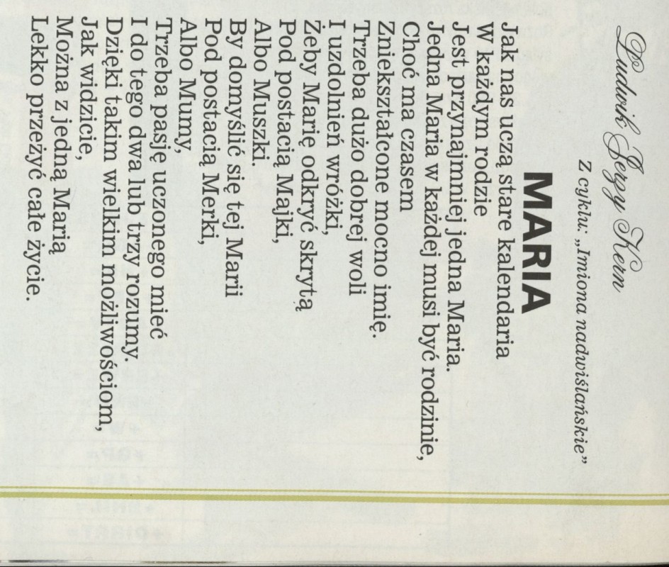 Archiwum nr 2828 (28/1999) 12/2248 Podziel się Tytuł Maria Autor Ludwik Jerzy Kern Artykuł z numeru 2828 (2829/1999) Data wydania 5 września 1999 Tagi imiona nadwiślańskie