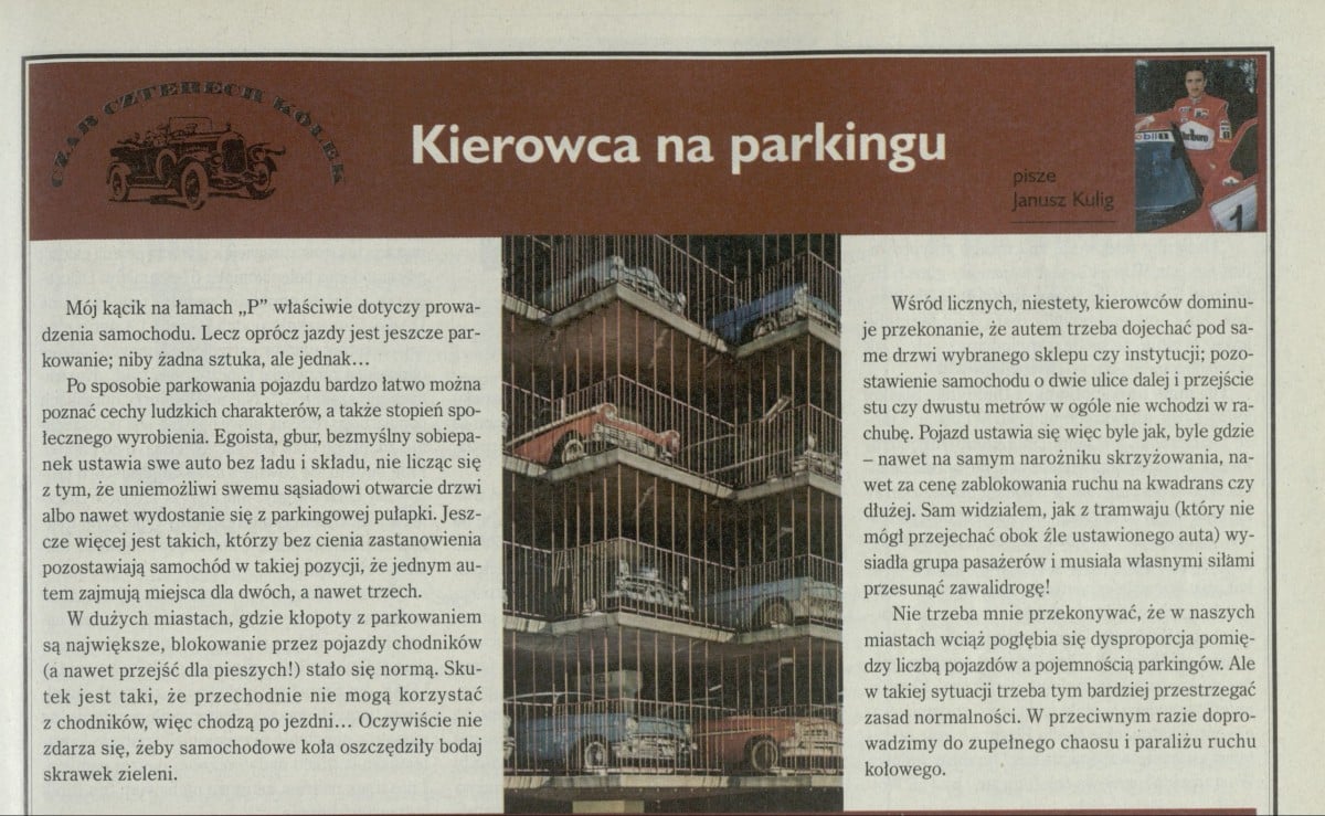 Archiwum / Czar Twoich kółek nr 2829 (28/1999) 07/1546 Podziel się Tytuł Kierowca na parkingu Autor Janusz Kulig Rubryka Czar Twoich kółek Artykuł z numeru 2829 (2830/1999) Data wydania 12 września 1999 Tagi auto
