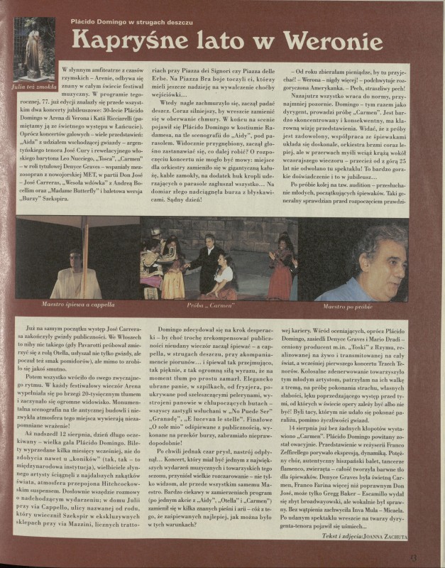 Archiwum / Relacja nr 2830 (28/1999) 17/1042 Podziel się Tytuł Kapryśne lato w Weronie Autor Joanna Zachuta Kategoria Relacja Artykuł z numeru 2830 (2831/1999) Data wydania 19 września 1999 Tagi Domingo