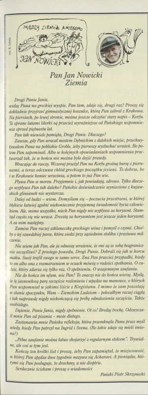 Archiwum / Korespondencja nr 2832 (28/1999) 123087/123969 Podziel się Tytuł Pan Jan Nowicki Ziemia Autor Piotr Skrzynecki Kategoria Korespondencja Artykuł z numeru 2832 (2833/1999) Data wydania 3 października 1999 Tagi Korfu
