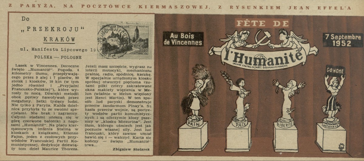 Archiwum / korespondencja własna "Przekroju" nr 390 (39/1952) 90/358 Podziel się Tytuł Z Paryża. Na pocztówce kiermaszowej z rysunkiem Jean Effell'a Autor zbigniew Stolarek Rubryka korespondencja własna "Przekroju" Artykuł z numeru 390 (39/1952) Data wydania 28 września 1952