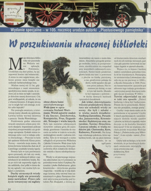 Archiwum / Artykuł nr 2832 (28/1999) 23/390 Podziel się Tytuł W poszukiwaniu utraconej biblioteki Autor Katarzyna Turaj-Kalińska Kategoria Artykuł Artykuł z numeru 2832 (2833/1999) Data wydania 3 października 1999 Tagi książki dla dzieci