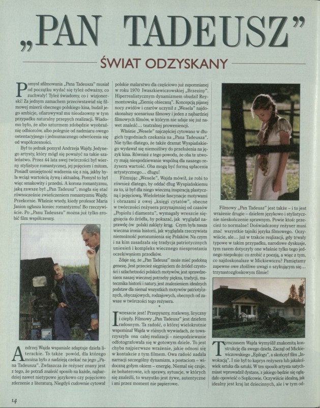 Archiwum / Artykuł nr 2835 (28/1999) 28/2096 Podziel się Tytuł „Pan Tadeusz” świat odzyskany Autor Maria Malatyńska Kategoria Artykuł Artykuł z numeru 2835 (2836/1999) Data wydania 24 października 1999 Tagi Wajda