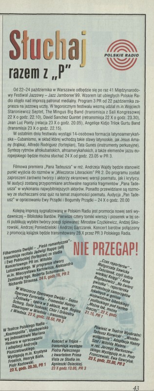 Archiwum nr 2835 (28/1999) 123332/123969 Podziel się Tytuł Słuchaj razem z „P” Artykuł z numeru 2835 (2836/1999) Data wydania 24 października 1999 Tagi radio