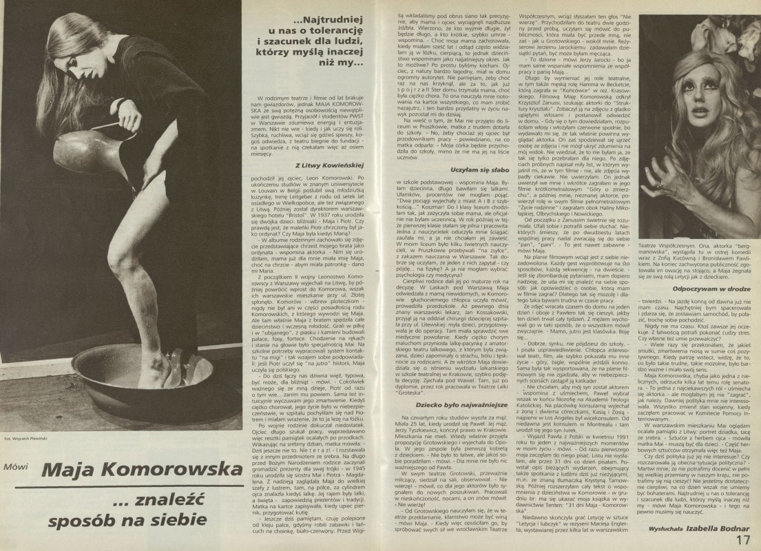 Archiwum / Artykuł nr specjalny 49/1993 105782/123969 Podziel się Tytuł Maja Komorowska... znaleźć sposób na siebie Autor Izabella Bodnar Kategoria Artykuł Artykuł z numeru nr specjalny 49/1993 Data wydania 5 grudnia 1993 Tagi Maja Komorowska życiorys